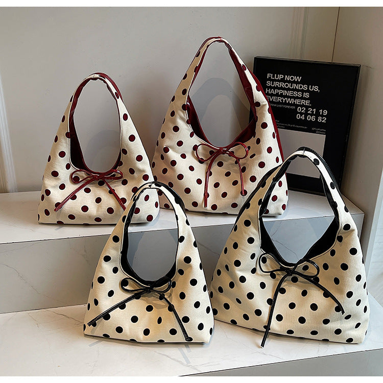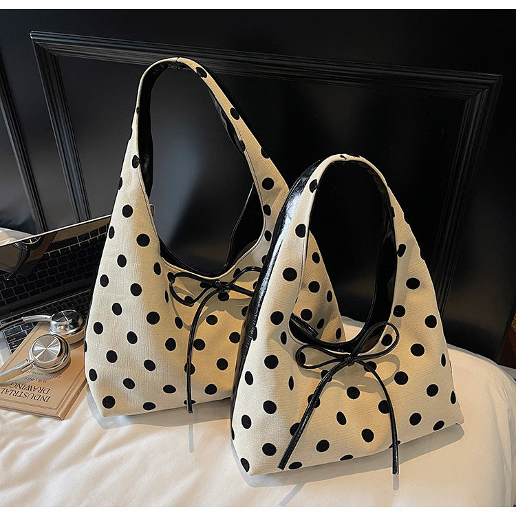 Playful yet feminine, the Poka Dote Ribbon Slouchy Shoulder is for Queens who love adding a little whimsy to their look. Soft ribbons meet effortless charm in this bag made for joyful self-expression. Carry it your way and let your personality shine.