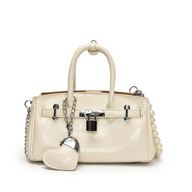 Fall in love with the Amour Lock Bag — where romance meets sophistication. This charming handbag features a delicate heart charm, a refined lock detail, and a trendy silhouette. Whether you're dressing up for date night or adding a soft, feminine touch to your everyday outfit, this bag makes a timeless statement. A signature piece from the Le Moodboard Paris collection. This bag is made of PU leather.