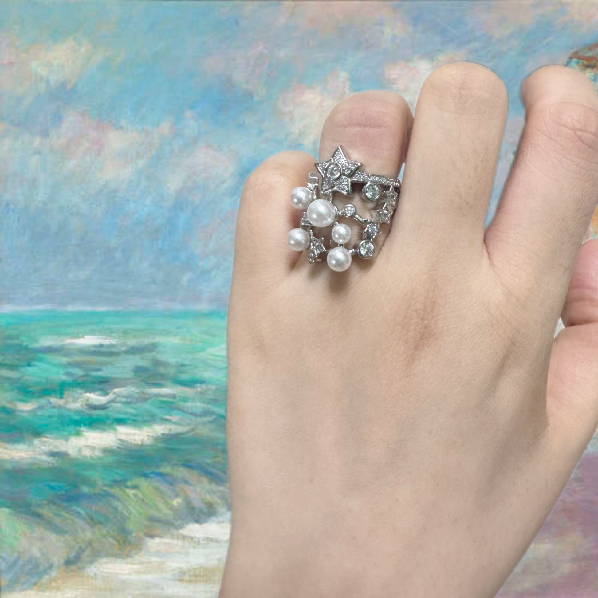 Step into the magic of the cosmos with the Cosmic Cascade Ring, a radiant piece inspired by the beauty of falling stardust. Designed to capture the brilliance of the night sky, this ring shimmers with celestial charm, making it a perfect statement piece. A must-have for dreamers and stargazers, it brings a touch of cosmic wonder to any outfit. May it guide your dreams and bring you a spark of magic every day.