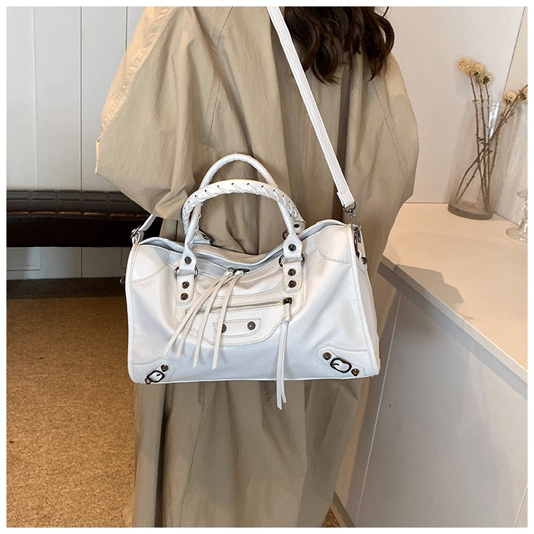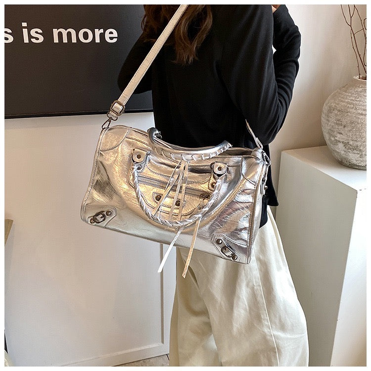 A cool and stylish bag with a modern silhouette and sleek metal hardware—designed for the woman who dares to stand out. The Modern Rebel Bag blends contemporary flair with fierce individuality. A Le Moodboard Paris essential. This bag is made of PU leather.