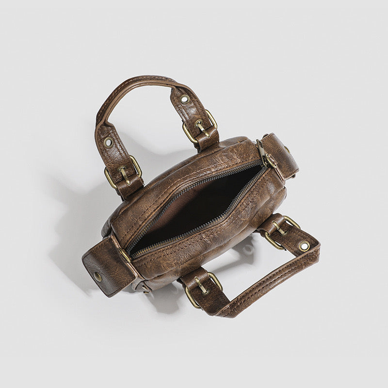 A classic silhouette with retro flair, the Retro Chic Bowling Bag brings vintage energy and modern charm to your outfits. A stylish favorite for the fashionistas. Part of the Le Moodboard Paris collection. This bag is made of PU leather.