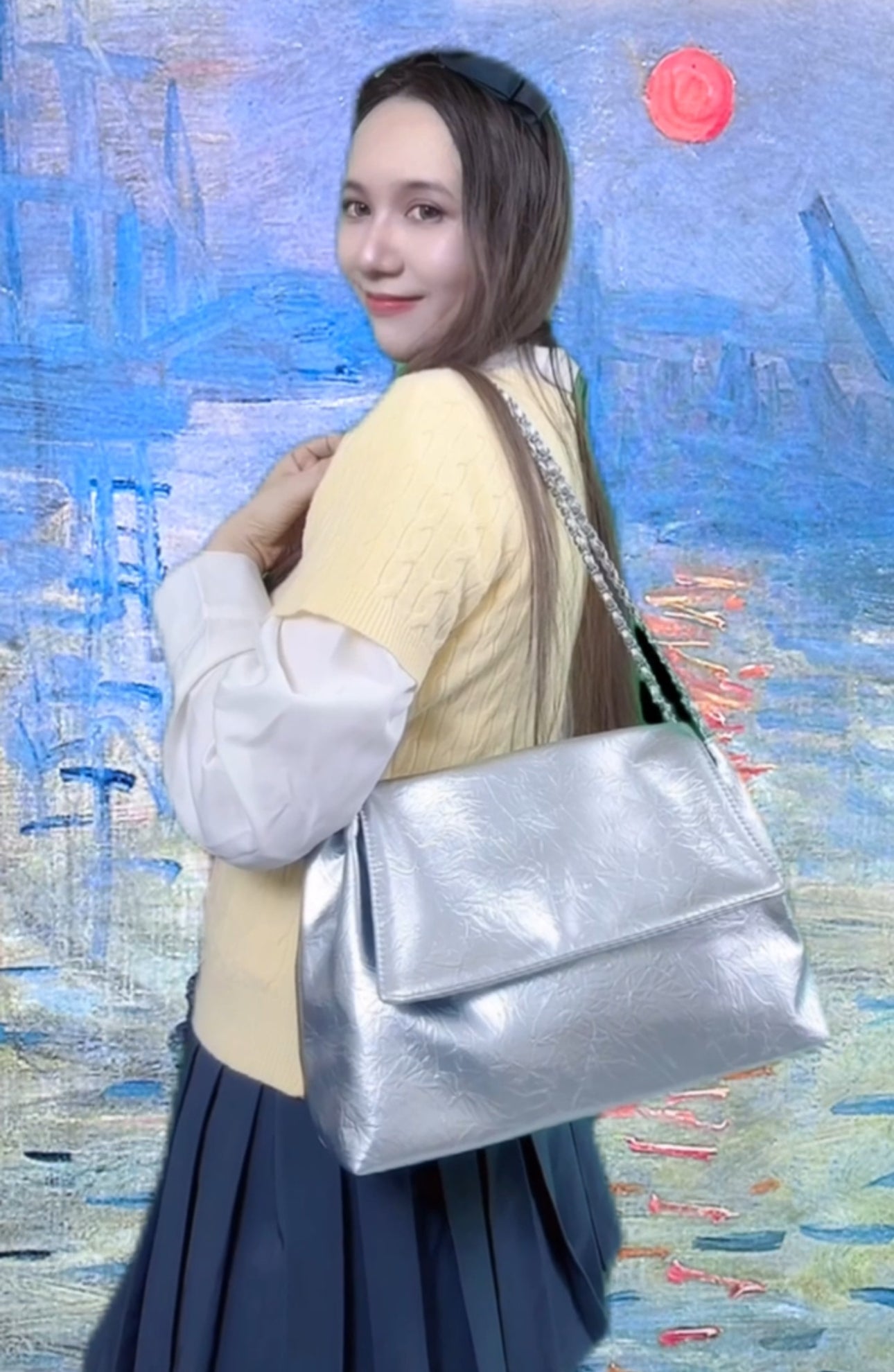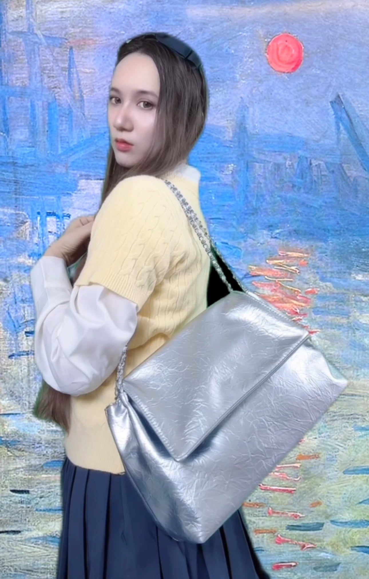 Make a statement with the Timeless Silver Trapeze Tote Bag. Its unique trapeze shape and striking silver tone make it a standout accessory, perfect for modern fashionistas.